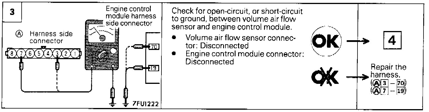 Hint 3: If the engine can be run at idle even though the volume air flow sensor output frequency is out of specification, troubles are often found in other than the volume air flow sensor itself.