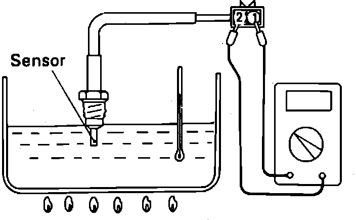 2. Place the EGR temperature Sensor in water and heat to 50°C (122°F).