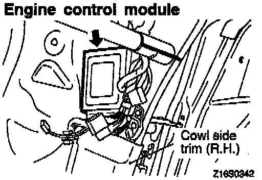 The Engine Control Module is located behind the right hand cowl trim panel.
