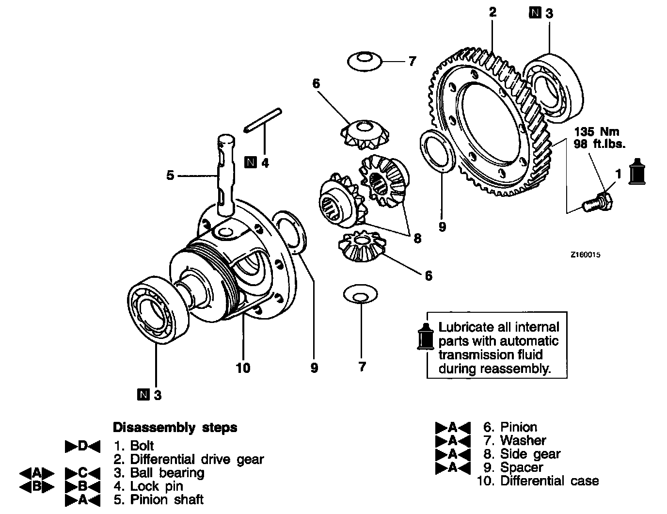 3. Remove the side gears and spacers from the case. Keep the removed gears and spacers for R.H. side use separated from those for L.H. side use.