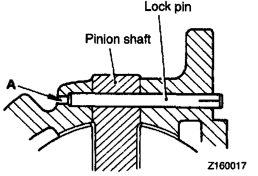 1. Drive out the lock pin with a punch inserted in hole "A".