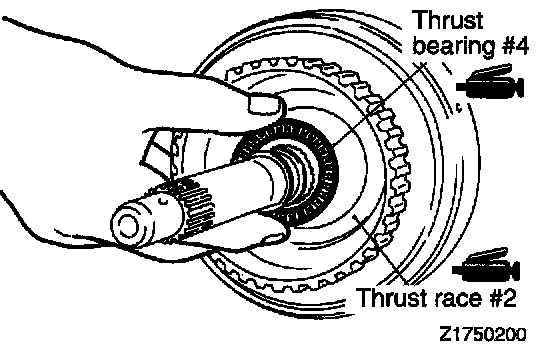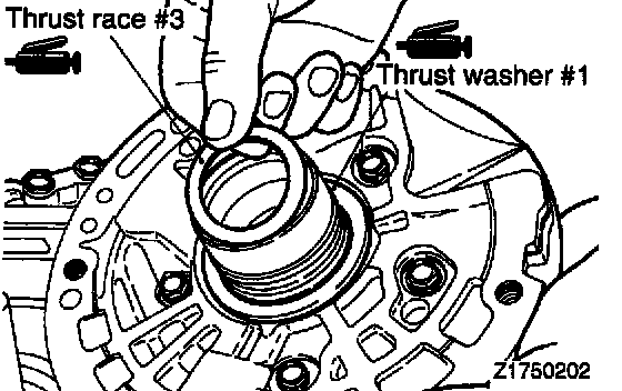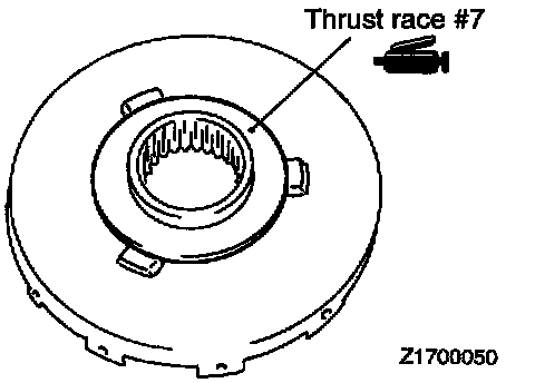 40. Apply petrolatum jelly to thrust race # 7 and attach the thrust race to the rear clutch hub.