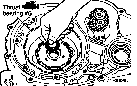 42. Apply petrolatum jelly to thrust bearing # 6 and attach it to the clutch hub.