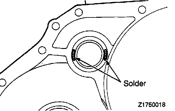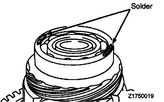 52. Place approx, 10 mm (0.394 in.) long and 2.5 mm (0.10 in.) dia. pieces of solder at the locations shown on the differential assembly.