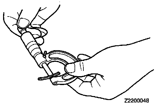 57. Measure the thinkness of the flattened solder using a micrometer. Add the measured solder thinkness (T) to the value 0.38mm (0.015 in.), which corresponds to the gasket thinkness. Then add to or subtract from that sum a value corresponding to the specified preload or end play range. The result obtained is the thinkness of the spacer to be selected.