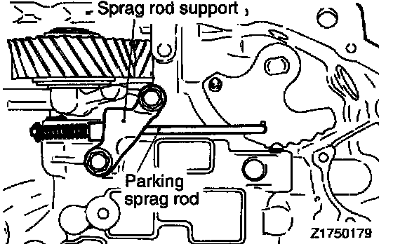 63. Install the parking sprag rod to the manual control shaft. Then, insert the shaft in the transaxle as shown in the illustration. In doing this work, do not install O-ring in the O-ring groove.