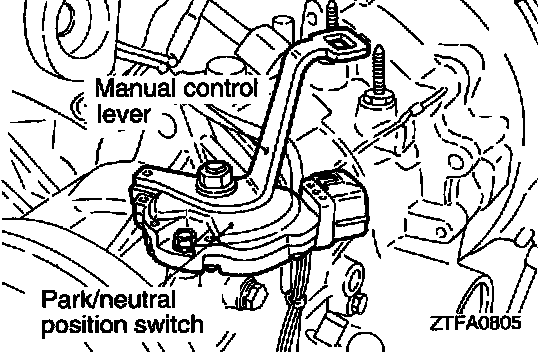 75. Install the park/neutral position switch and manual control lever, and tighten the manual control lever nut to the specified torque.