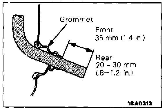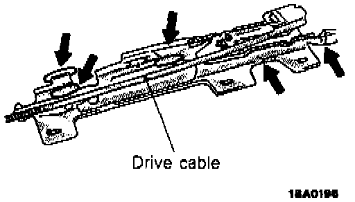 1. Slide the sliding roof drive cable assembly so that the notches in the guide rail are as indicated in the illustration.
