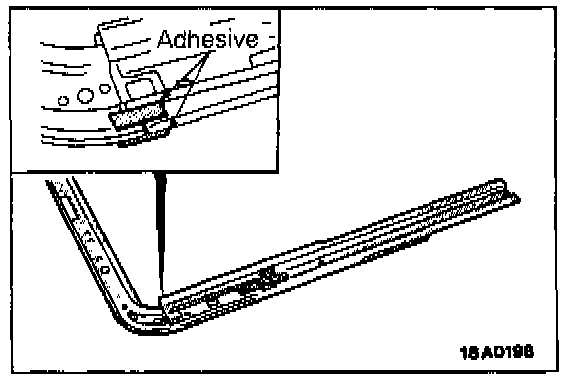 CAUTION: If too much adhesive is applied, adhesive will adhere to the roof panel at the time of installation to body, so don't apply too much.