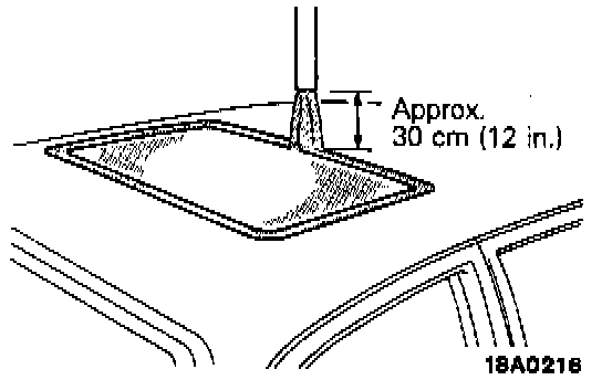 3. Pour water over the roof from about 30 cm (12 in.) above roof for more than 5 minutes.