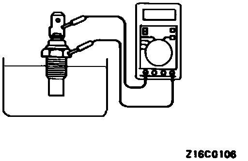 To check, remove engine coolant temperature gauge unit from the thermostat housing.
