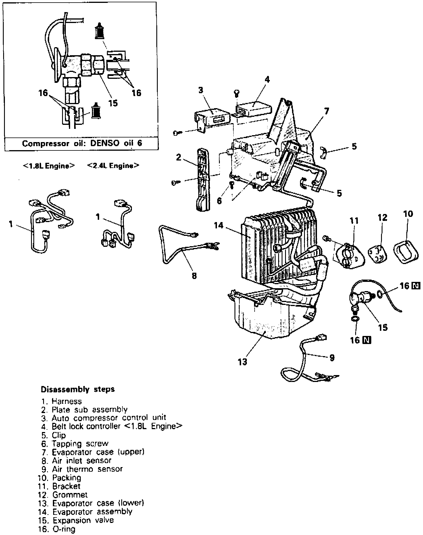 2. Remove and disassemble evaporator housing in numbered sequence shown, noting following:
