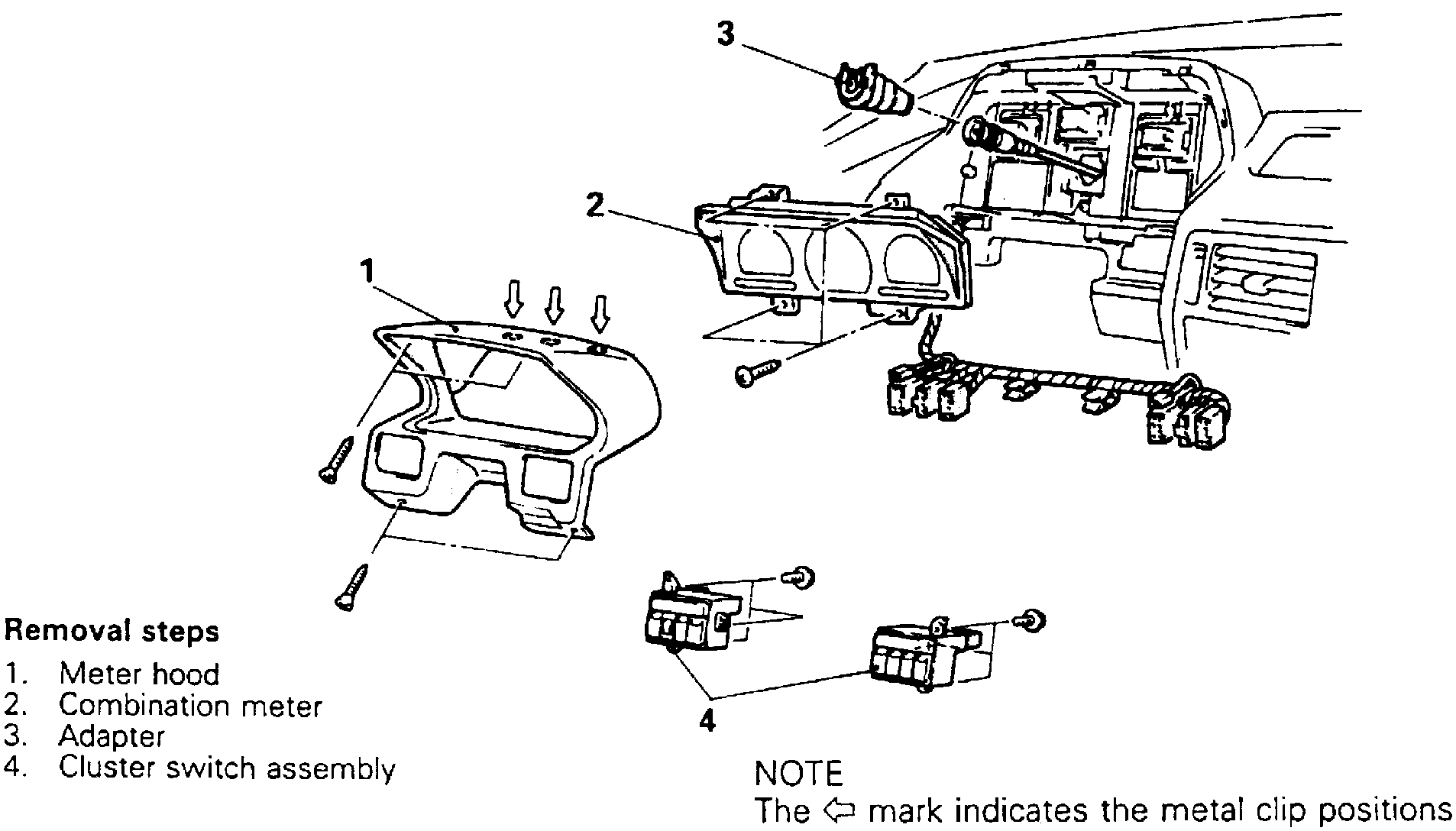 4. Remove adapter lock, pull speedometer cable slightly into passenger compartment then rear side of adapter from cable.