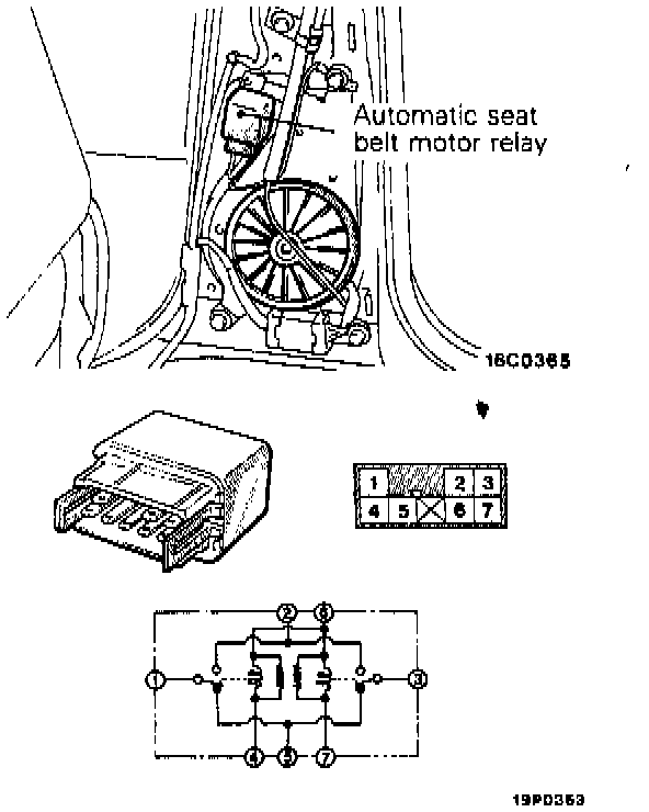 1. Remove the automatic seat belt motor relay.