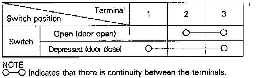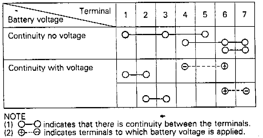 2. Check for continuity between terminals under the conditions described in the chart above.