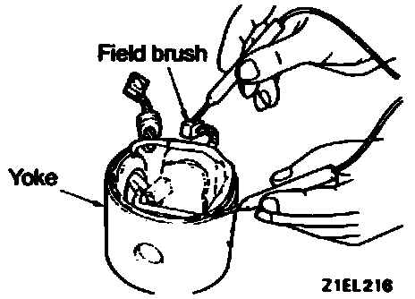 brush and yoke. It there is no continuity, the field coil is free from grounding.