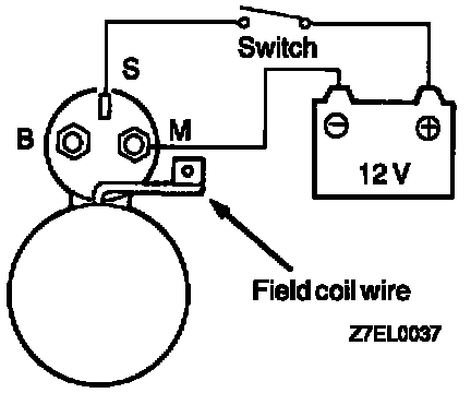 1. Disconnect field coil wire from M-terminal of magnetic switch.