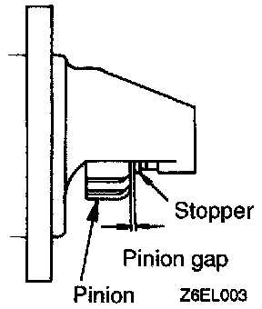 5. If pinion gap is out of specification, adjust by adding or removing gaskets between magnetic switch and front bracket.