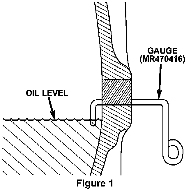 3. Remove the transfer case oil filler plug. Check the amount of oil in the transfer case by inserting the transfer case oil level gauge (PN MR470416) into the oil filler hole (Figure 1).