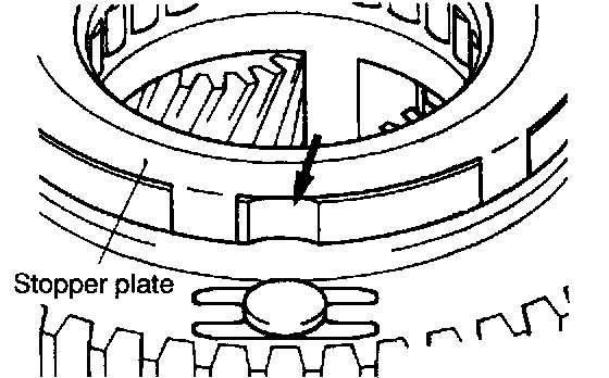 NOTE: The catch of the stopper plate should not catch in the one-way clutch outer race groove.