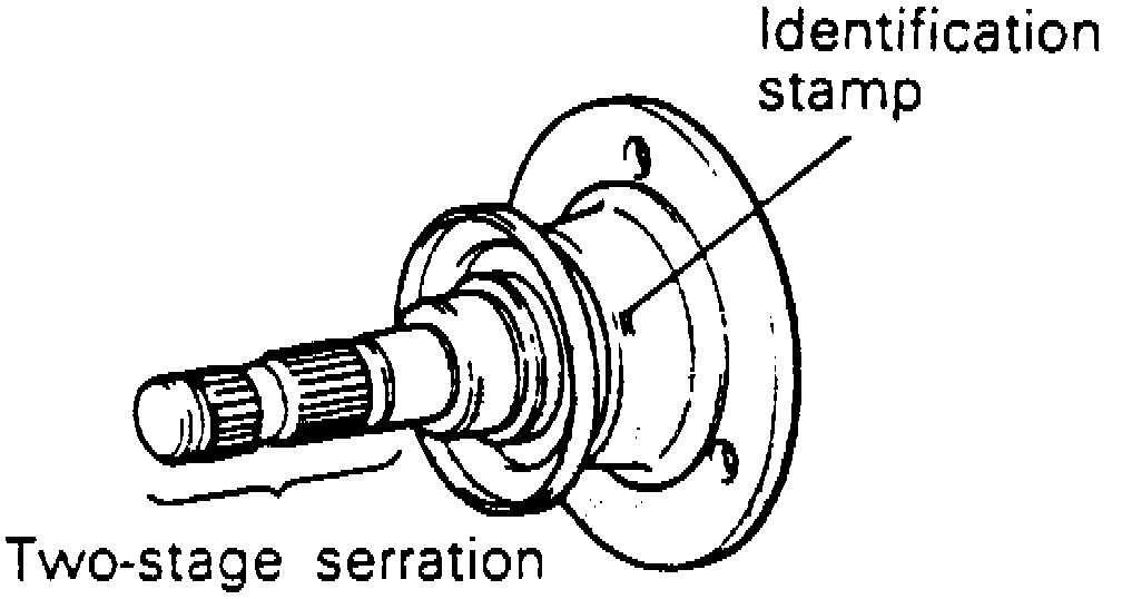 b. Do not damage oil seal of differential carrier with spline section of companion shaft. Righthand shaft on vehicles that have LSD with VCU has a two stage serration. Left and right end can be determined from stampings on companion shaft.