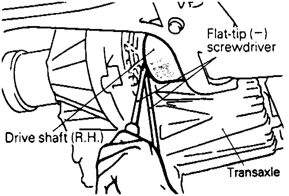 e. When removing RH driveshaft, use two screwdrivers as shown.