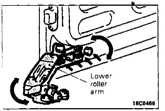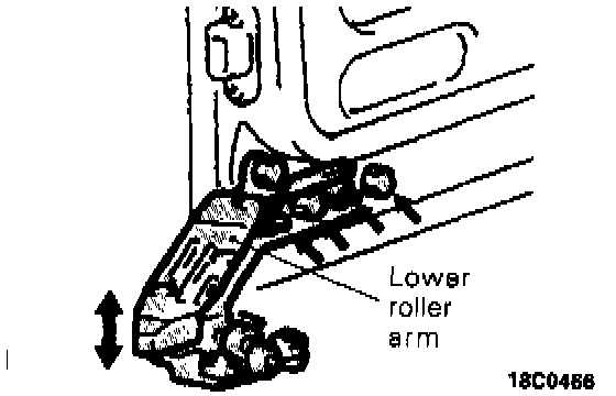 CAUTION: After adjustment, the front and rear of the lower roller arm guide should not interfere with the lower rail.