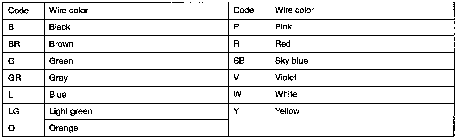 Wire colors are identified by the following color codes.