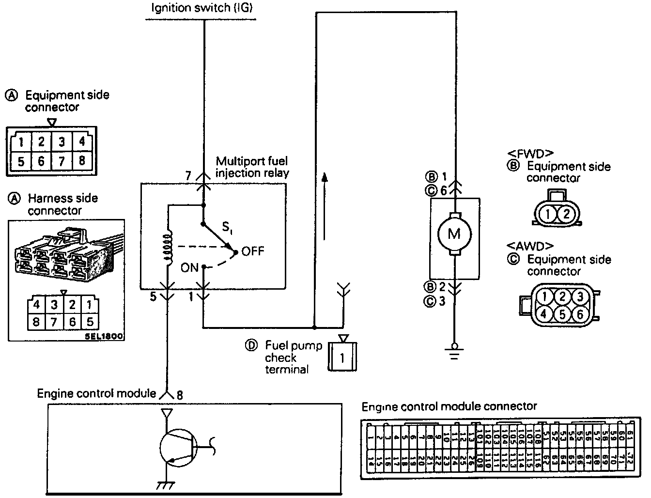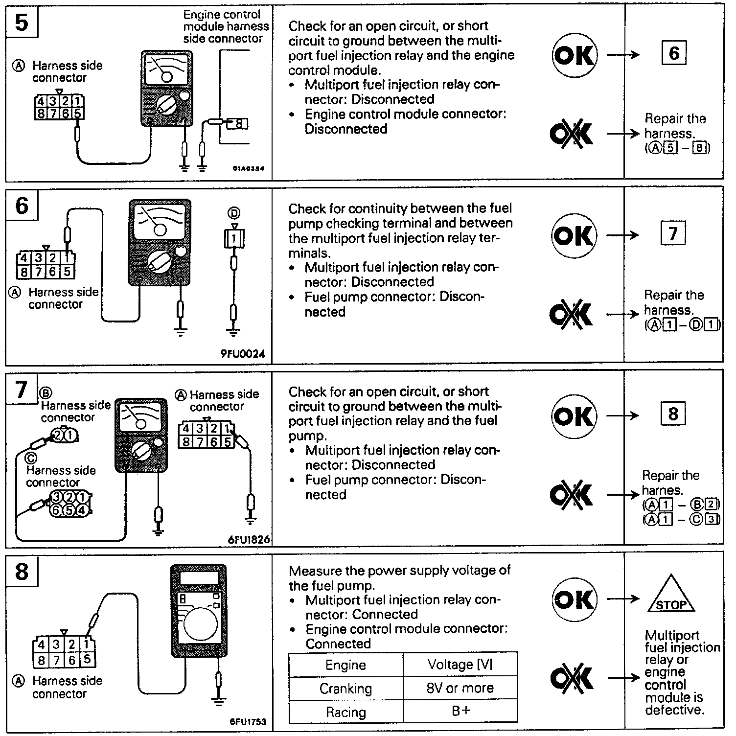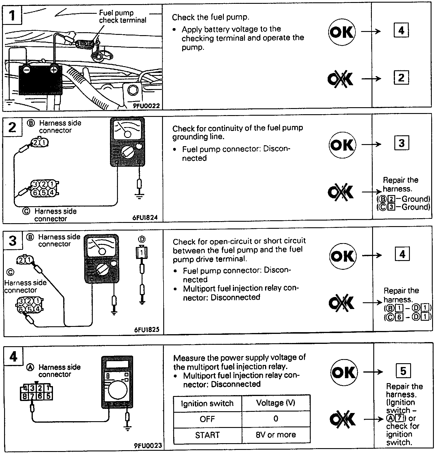2. If the fuel pump will not operate check by using the following procedure. If normal check the fuel pump drive circuit.