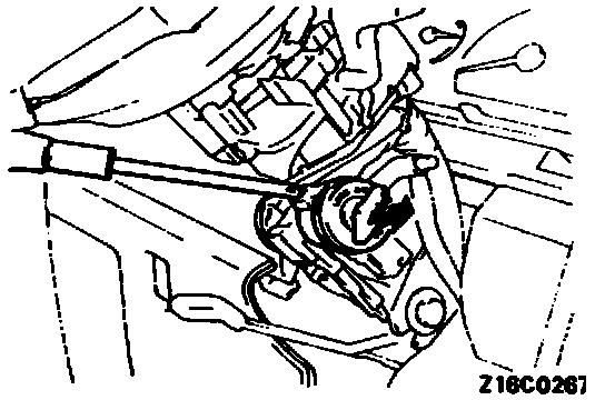 2. Press the lock pin down with a Phillips head screwdriver (small-size one) to remove the steering lock cylinder.