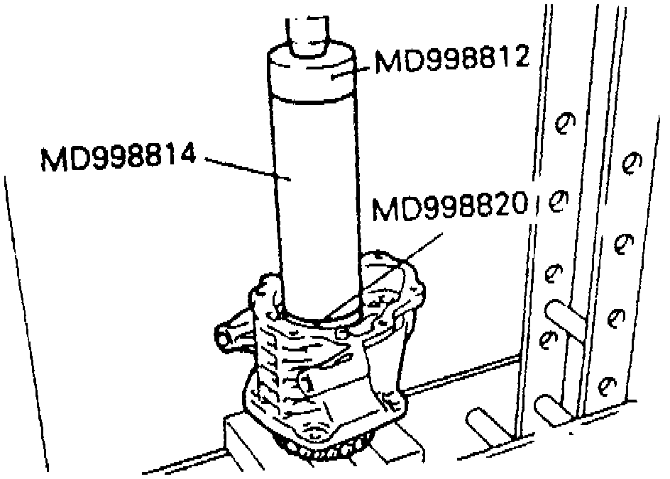 a. When installing taper roller bearing, use installer cap tool No. MD998812, installer tube tool No. MD998814 and installer adapter tool No. MD998820, or equivalent, as shown.