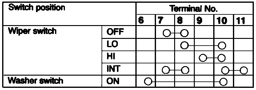 Wiper And Washer Switch Continuity Table: