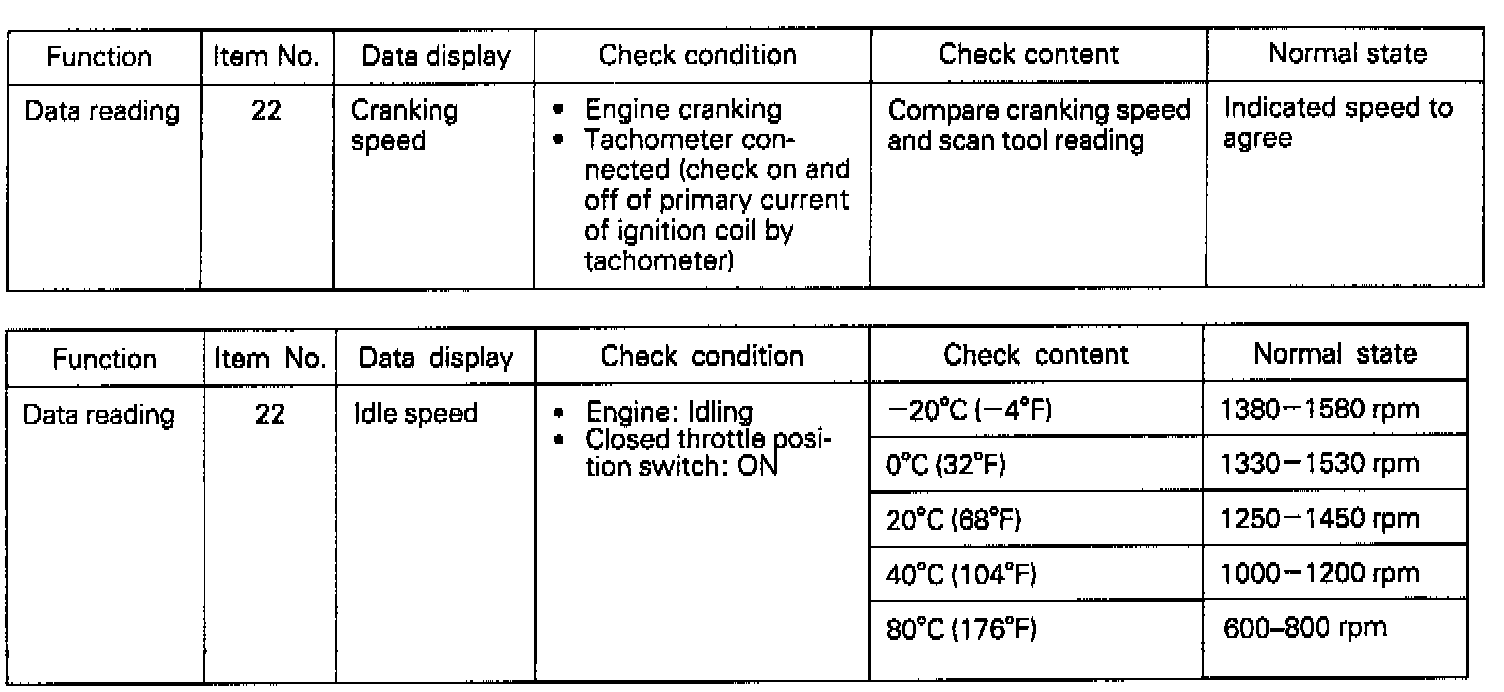 HINT 5: If the engine can be run at idle even though the crankshaft position sensor reading is out of specification troubles are often in other than the crankshaft position sensor. [Examples]