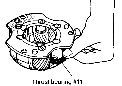1. Install a thrust bearing # 11 on the carrier. Make sure that it fits correctly in the spot faced portion of the carrier.