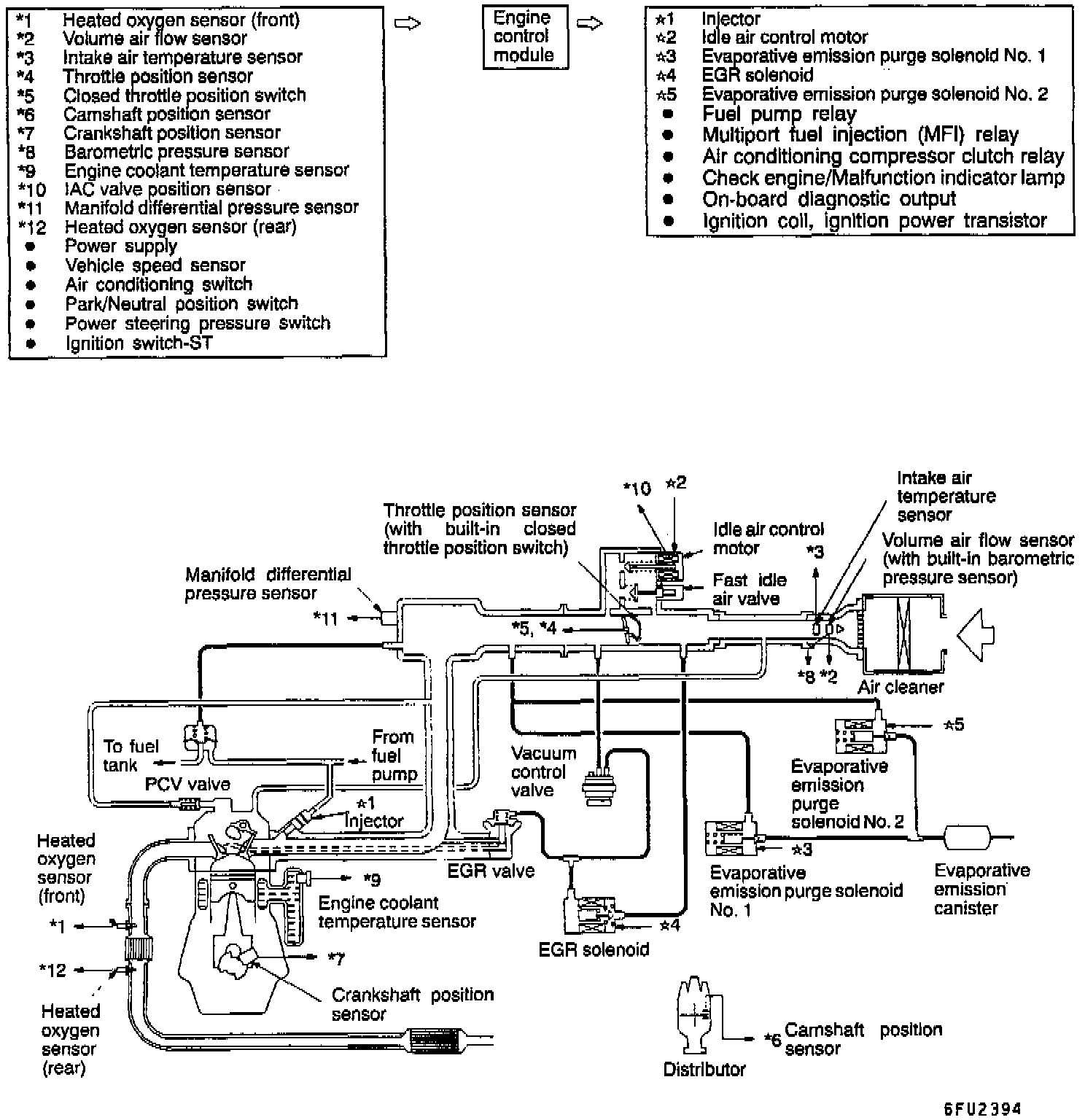 Based on information from the input sensors--engine coolant temperature, barometric pressure, air flow, etc.--the ECM determines optimum control of fuel injection, idle speed, ignition timing, etc..