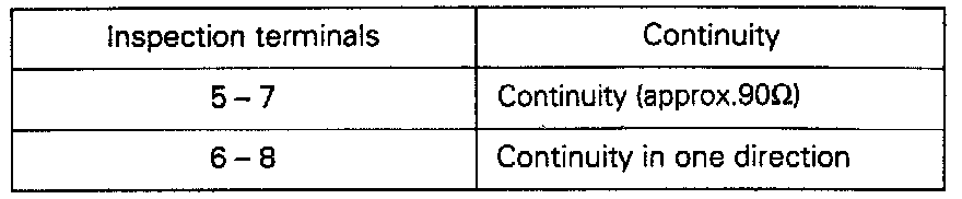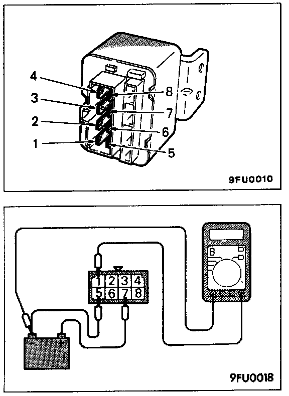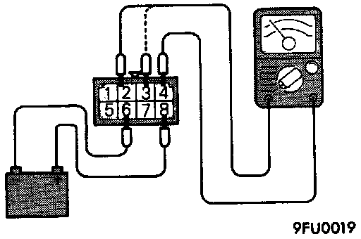 2. Check the continuity between the multi port fuel injection relay terminals 5 - 7 and 6 - 8.