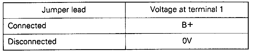 4. Check the voltage at multiport fuel injection relay terminal 1 while connecting and disconnecting the jumper lead at the battery (-) terminal.