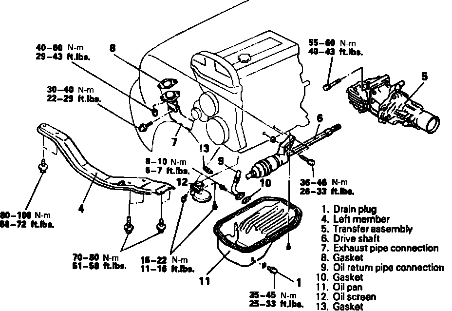 Remove oil pan and oil screen in numbered sequence, noting the following: