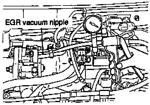 1. Disconnect the vacuum hose (white stripe) from the throttle body Exhaust Gas Recirculation (EGR) vacuum nipple and connect a hand vacuum pump to the nipple.