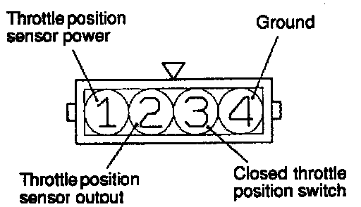 3. Check for continuity between terminals No. 3 (closed throttle position switch) and No. 4 (ground).