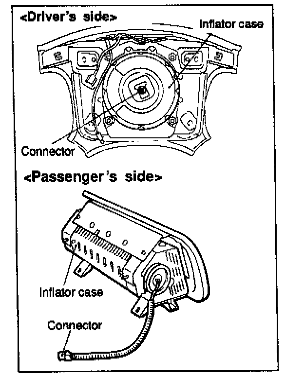 3. Check air bag inflator case for dents, cracks or deformation.
