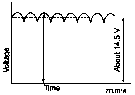 This alternating current is rectified through diodes to DC voltage having a waveform shown in the illustration at left. The average output voltage fluctuates slightly with the generator load condition.