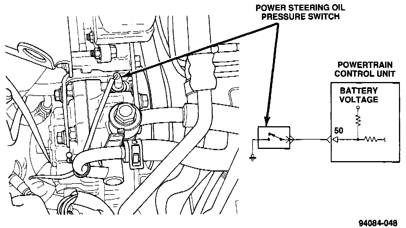 65 POWER STEERING SWITCH FAILURE - (P 0551)The power steering switch serves as a Powertrain Control Module (PCM) input at pin 56. Data from this switch allows the PCM to compensate for the additional engine load during steering maneuvers that require high steering pump pressure.