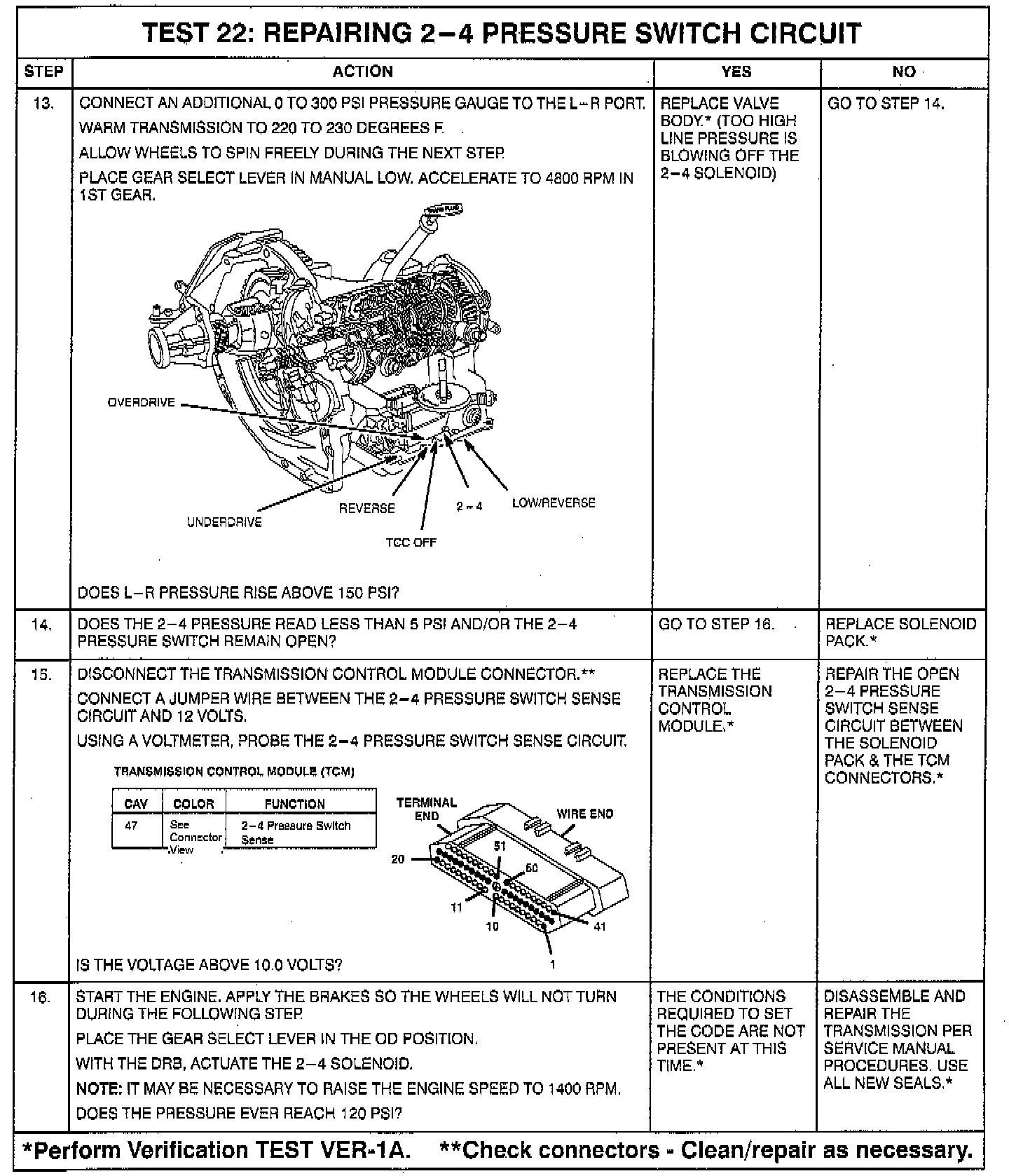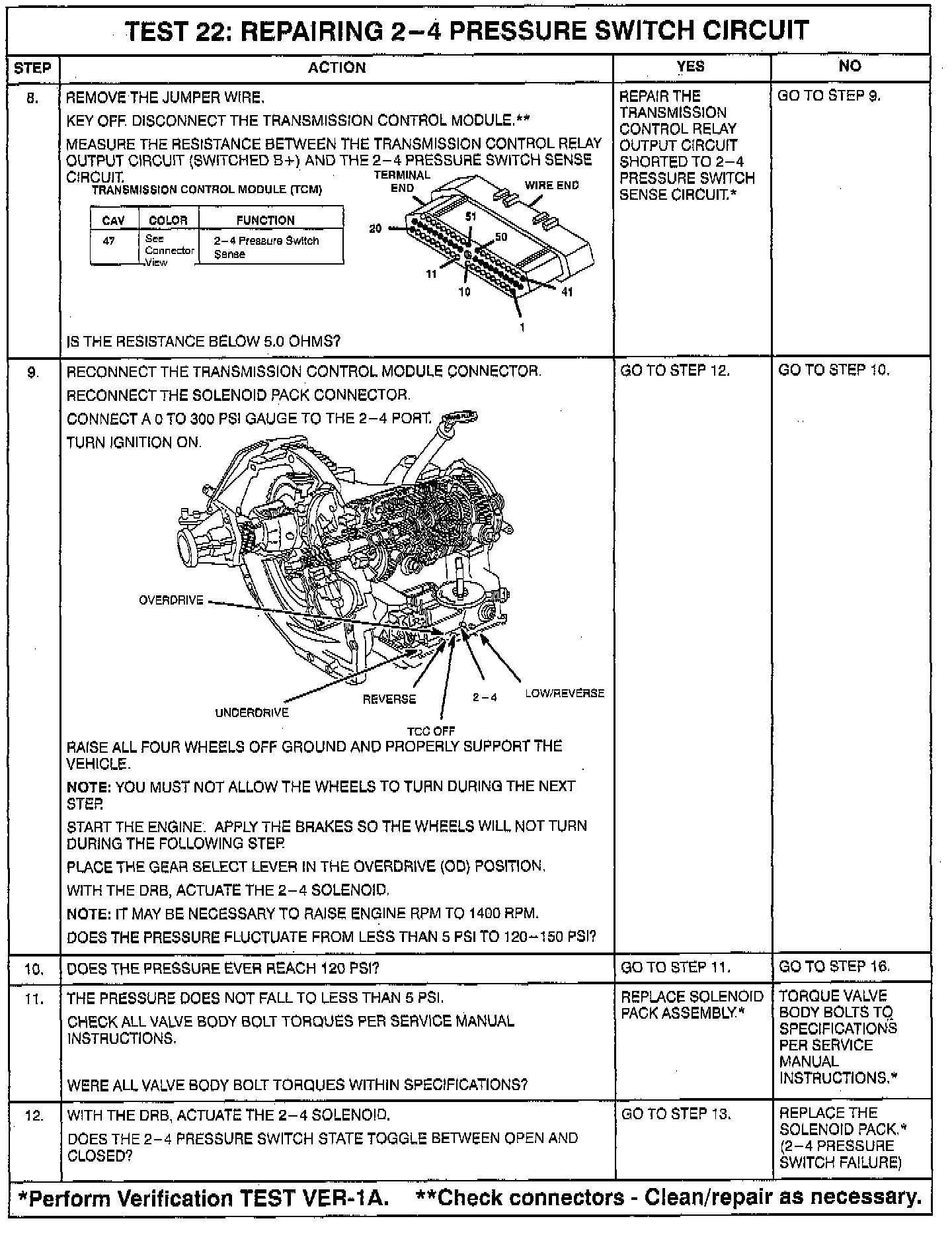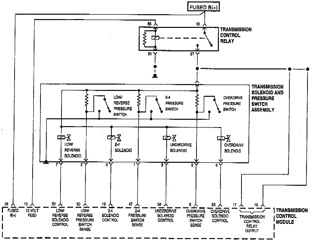 - 2-4 pressure switch sense circuit open or shorted to ground between TCM and solenoid pack