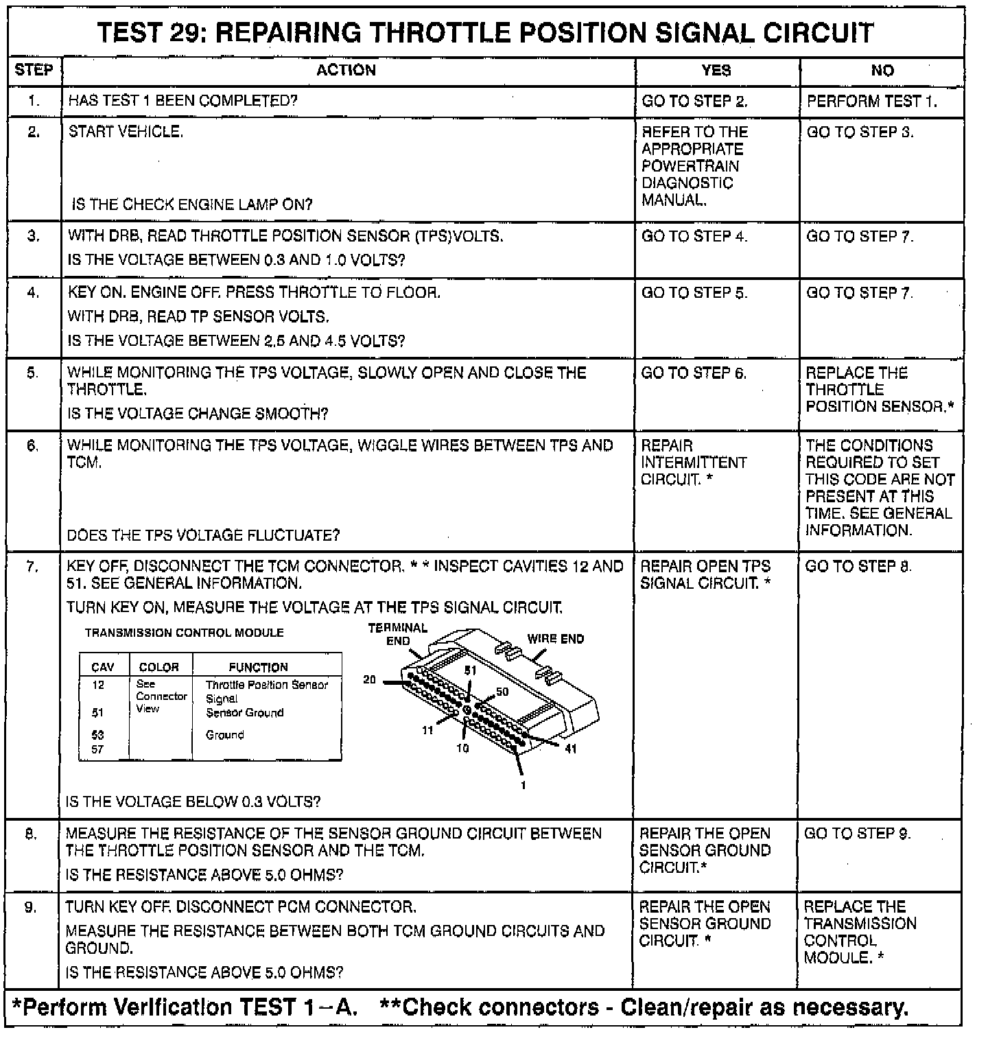 98 model year - If this code is set, the TCM uses a "calculated throttle angle" supplied by the PCM over the CCD bus. If this CCD bus is unavailable, the TCM uses a default throttle angle of 24 degrees for the key start in which the code was set. The TCM will try to use the TPS signal again on the next key start. Additionally, this fault code will not result in MIL illumination.
