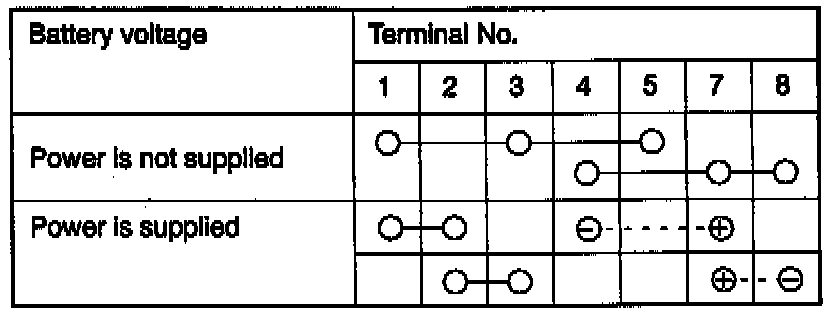 2. Check for continuity between terminals under the conditions described in the chart.