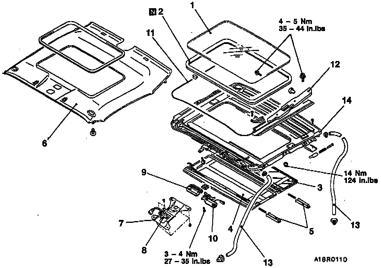 11. Sunroof drive cables connection