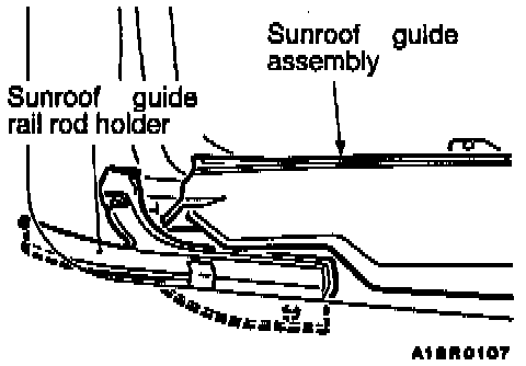1. Tilt the sunroof guide assembly and then remove the sunroof guide rail rod holder.