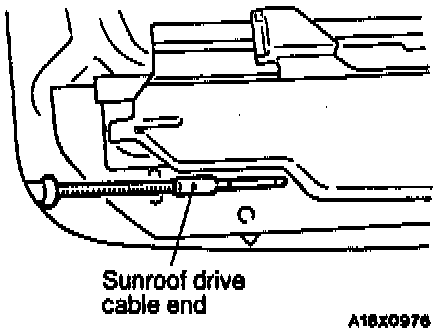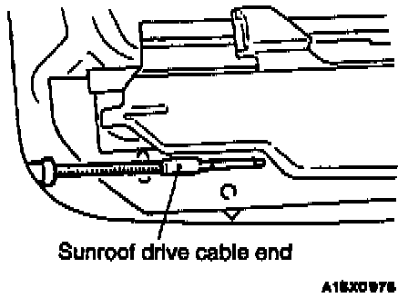 2. Close the sunroof guide assembly and disconnect the sunroof drive cable end from the sunroof guide assembly.