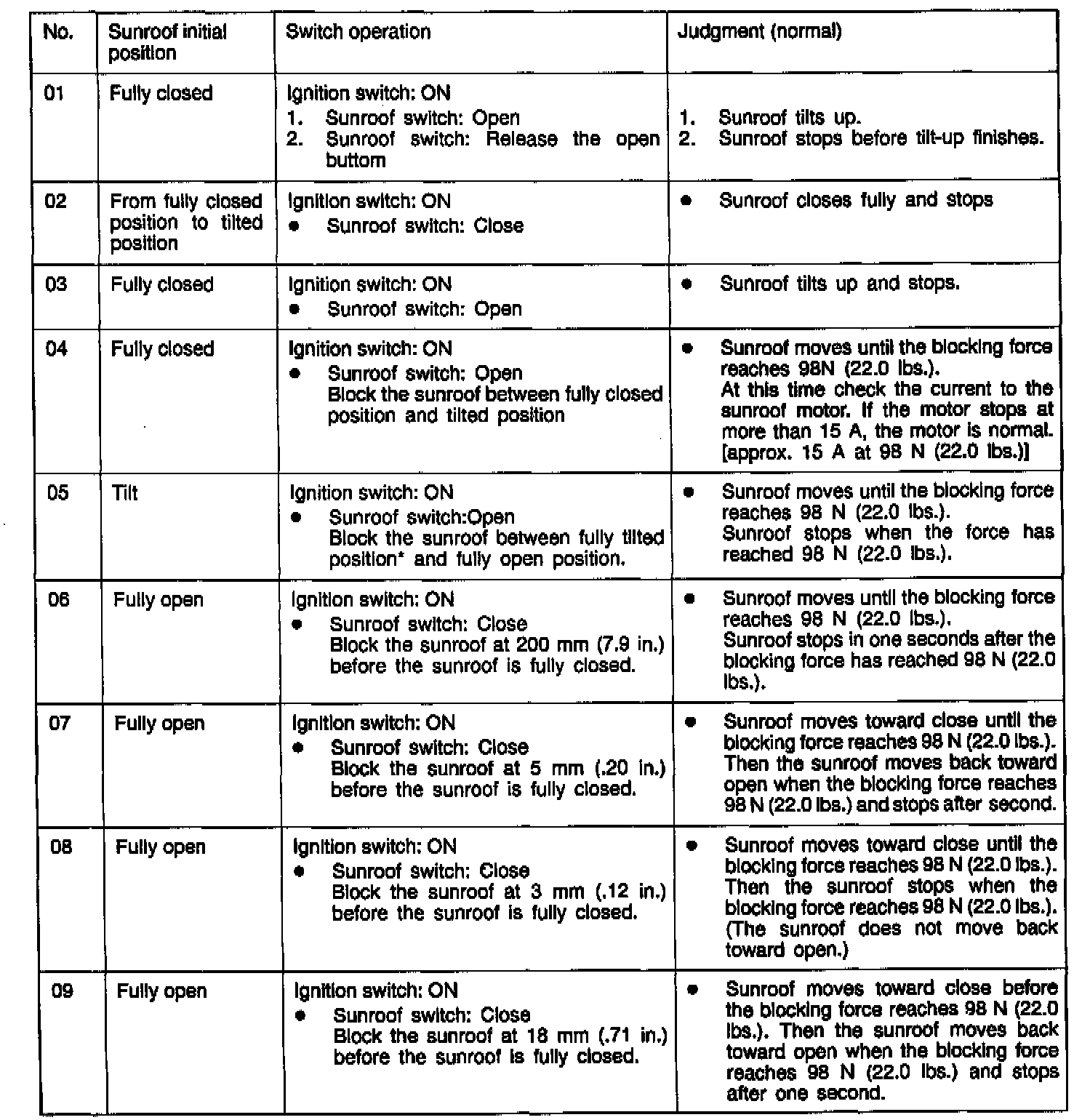 NOTE: "Fully tilted position" is the position where the sunroof has tilted up and begins sliding.